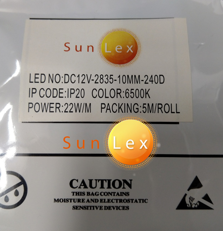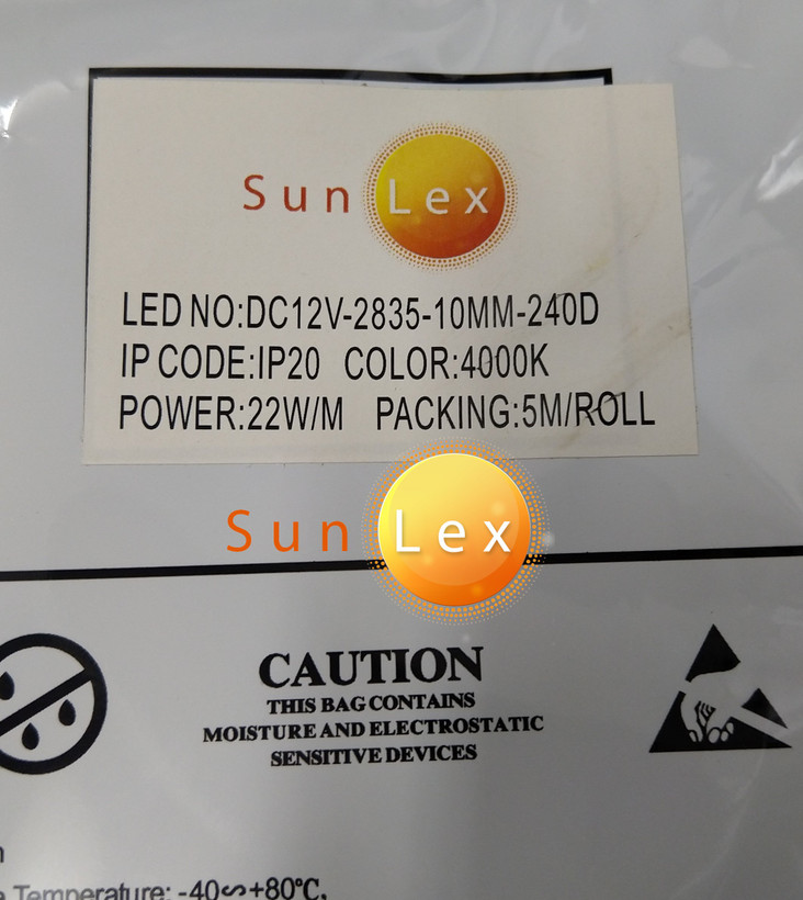 ریسه نواری SMD برند سانلکس 12 ولت 2835 تراکم 240 پشت چسب دار 5 متری عرض 8 میلی متر