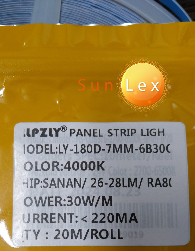 ریسه نواری SMD برند سانلکس جریان ثابت 2835 تراکم 180 پشت چسب دار 20 متری عرض 7 میلی متر نور نچرال