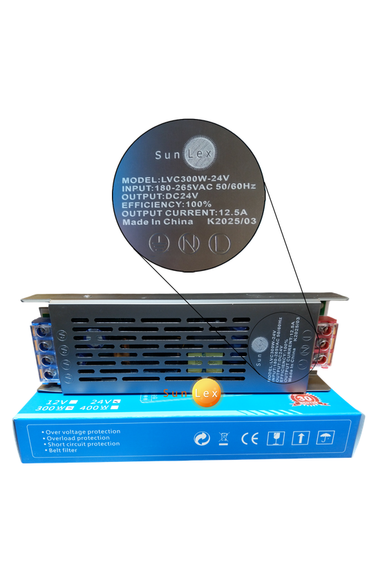 این کالا خروجی با ولتاژ 24 ولت و شدت جریان 12.5 آمپر (300 وات) را دارد.