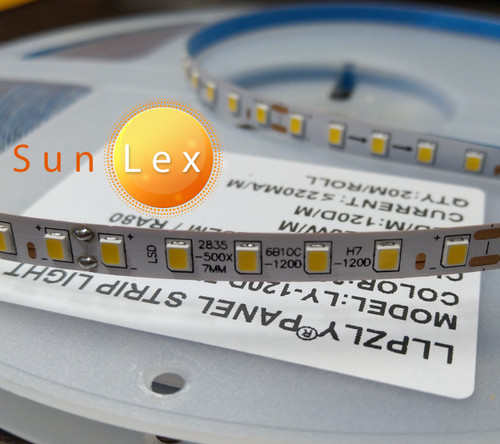 ریسه نواری SMD برند سانلکس جریان ثابت 2835 تراکم 120 پشت چسب دار 20 متری عرض 7 میلی متر